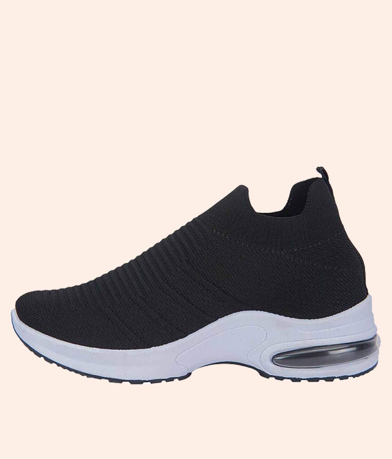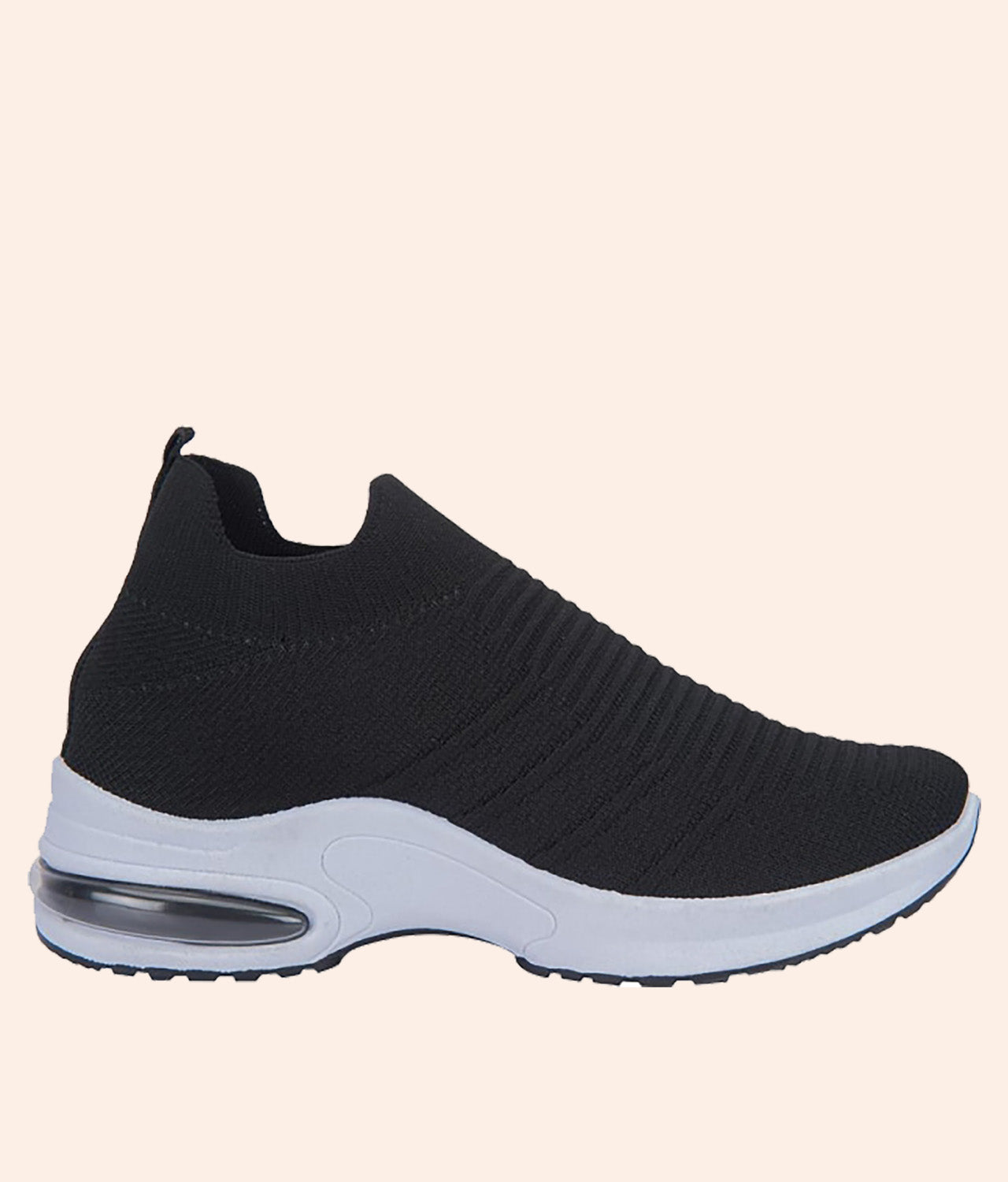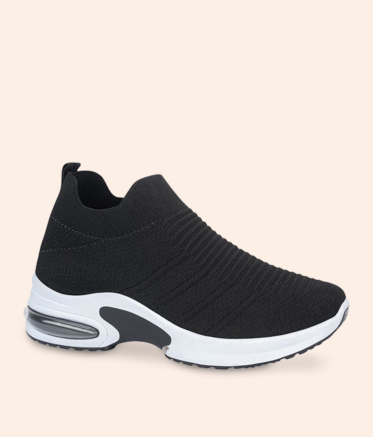 Los tenis Next & Co Confort están diseñados para brindarte suavidad y soporte en cada paso. Su corte tipo tejido elástico en color negro se adapta al pie como una media, mientras que la suela blanca con detalle de cámara de aire ofrece una sensación de amortiguación ligera. Son ideales para caminar, hacer tus actividades diarias o combinar con looks casuales sin perder el estilo.